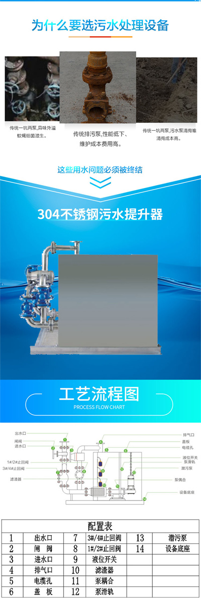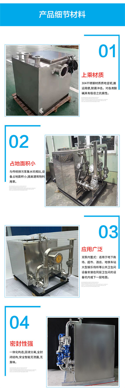 污水提升器實(shí)質(zhì)上是泵類的產(chǎn)品,其基本工作原理是在污水進(jìn)入到提升器水箱以后,再利用泵賦予污水能量,使污水經(jīng)過(guò)提升器排水口時(shí)具有適宜的速度,從而使污水能上升到所需要的高度,然后順利到達(dá)排污管,實(shí)現(xiàn)地下室污水排放的目的。