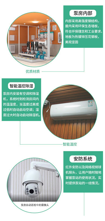 一體化智慧泵房能夠一定程度上提高安裝使用效率,節(jié)約工時,同時具備體型小,工作效率高,智能化系統(tǒng)水平高等特點。一體化智慧泵房和傳統(tǒng)泵房相比較土建施工比較少,生產(chǎn)制造安裝使用工期較短,低投資,安裝使用方便質(zhì)量穩(wěn)定是傳統(tǒng)泵房的理想替代品。